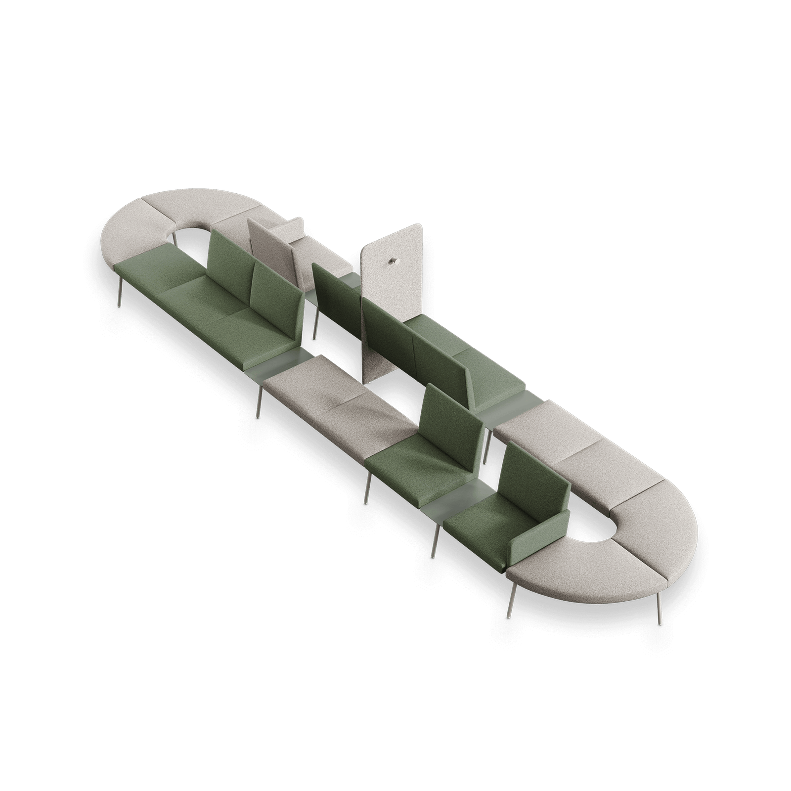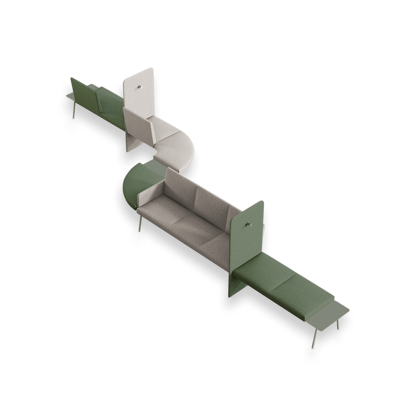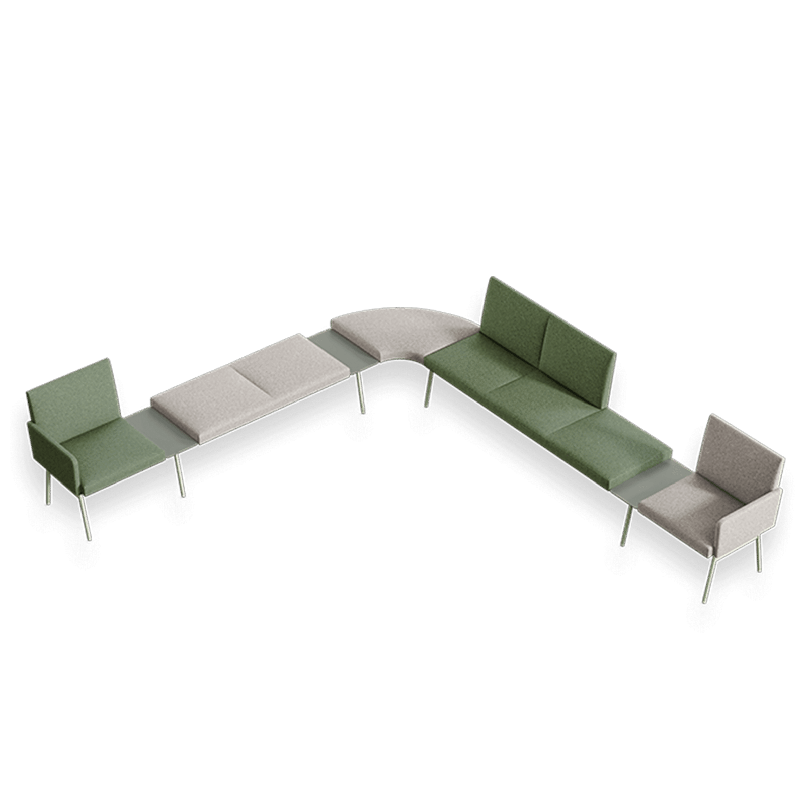 מערכת ישיבה מודולרית מבית המותג B&T, מתאימה לאזורים משותפים, מרחבים ציבוריים וחדרי המתנה. מגוון מודולים ואפשרויות להרכבה, ניתן להוסיף מחיצות הפרדה ושולחנות צד. זמינה במגוון חומרים, גדלים, צבעים ובדים בטקסטורות שונות.