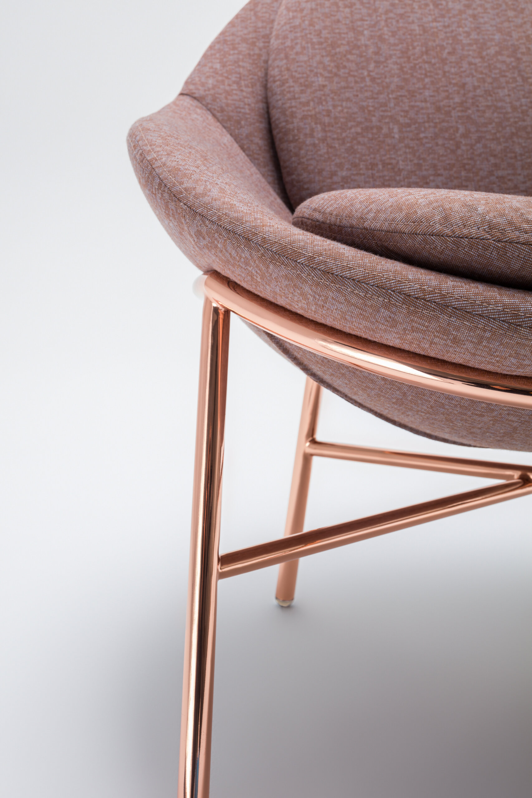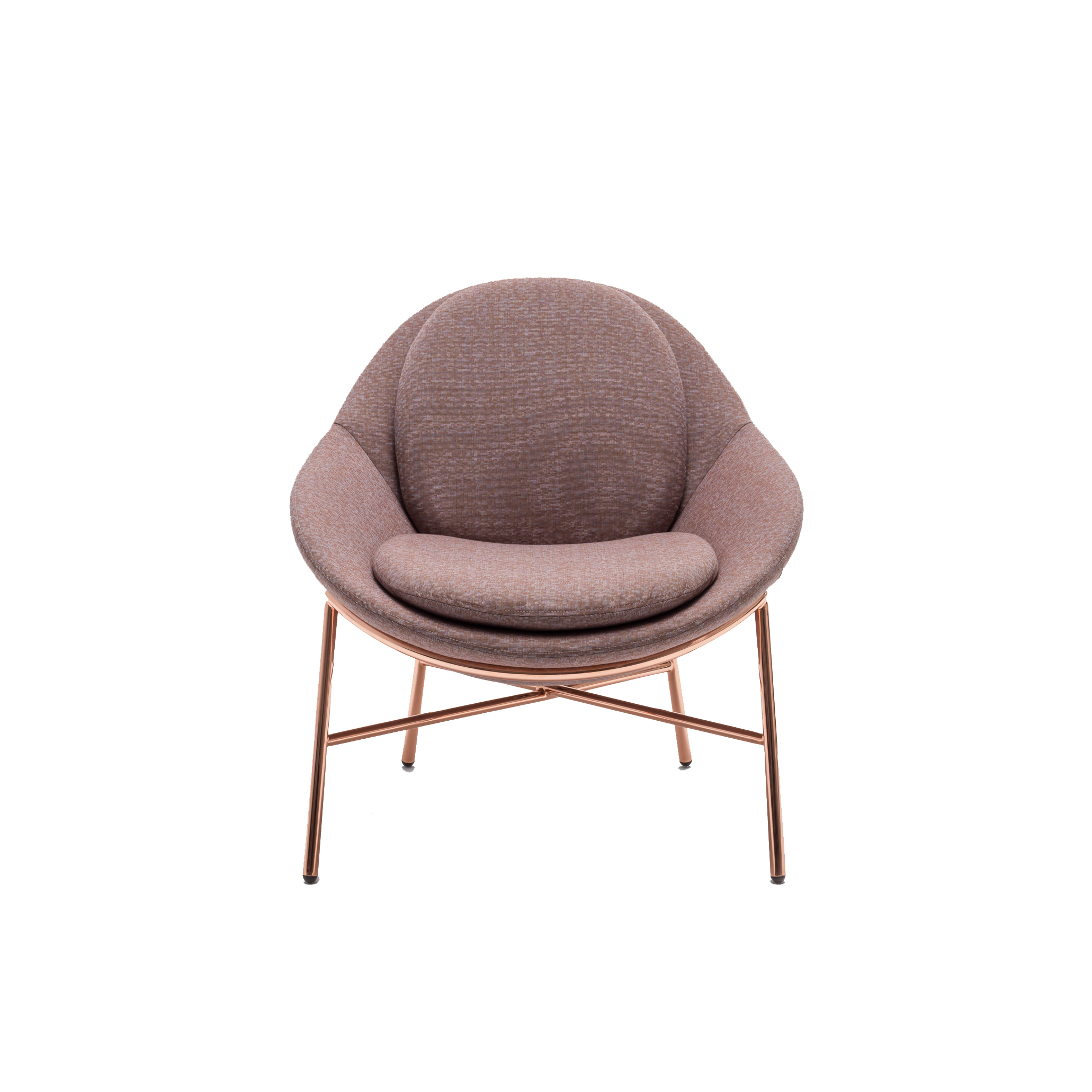 כורסת לאונג' מבית המותג Comforty, מתאימה לסביבות אירוח, אזורי לאונג' ולובאים. לכורסה עיצוב השואב השראה מצדפה. בסיס מתכתי בצורות שונות, ניתן להזמין את הריפוד והמושבים בגרסה רכה או קשיחה. מגוון בדים, צבעים והדפסים.