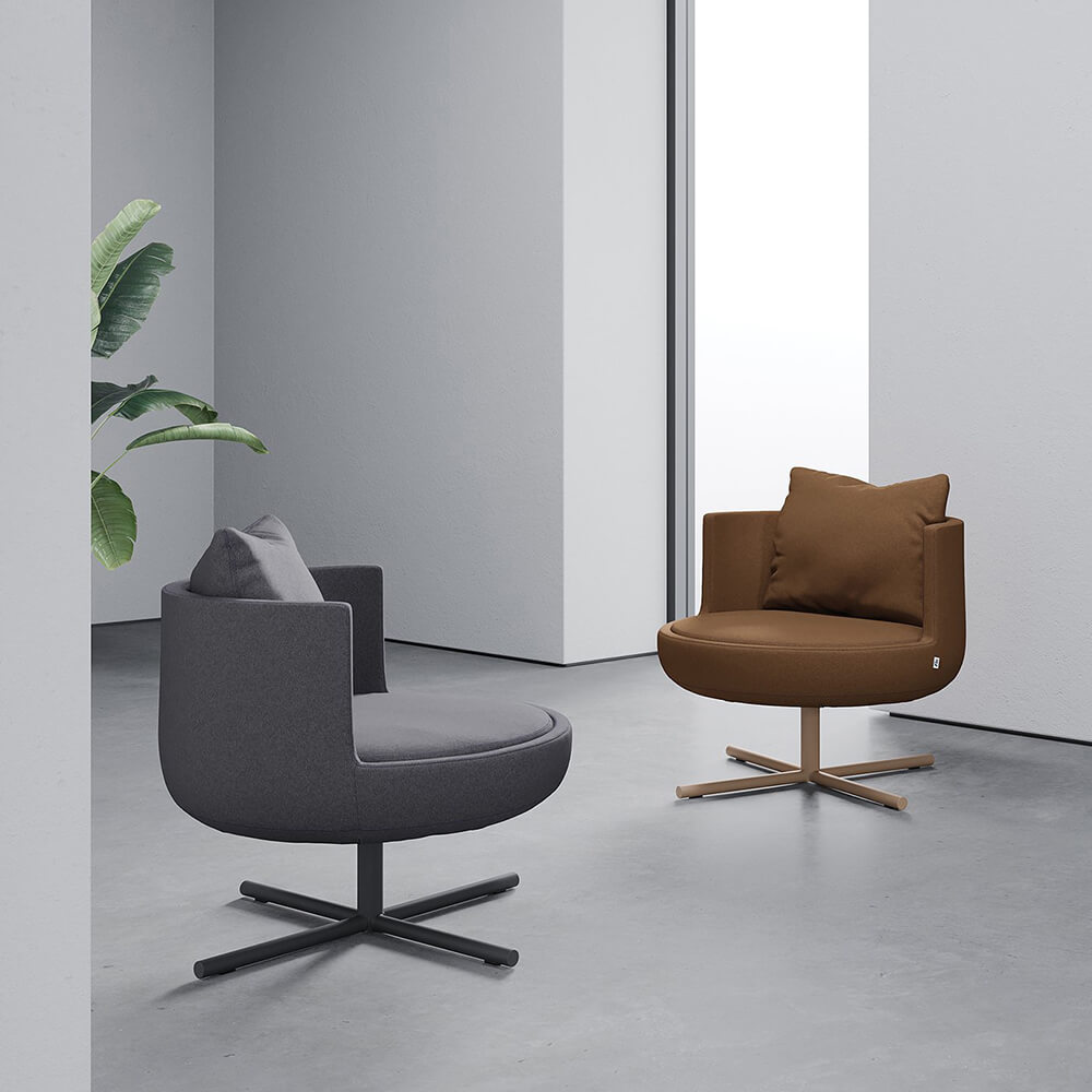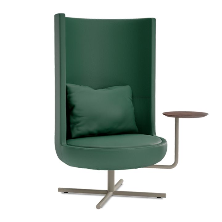 כורסת לאונג' מבית המותג B&T, מתאימה לסביבות אירוח, אזורי לאונג' ולובאים. לכורסה משענת גב רגילה או משענת גבוהה שמעניקה פרטיות ותמיכה לגוף. מספר בסיסים בגימורים משתנים. לפריט מגוון בדים בטקסטורות שונות בשלל צבעים, אופציה להוספת שולחן צד.