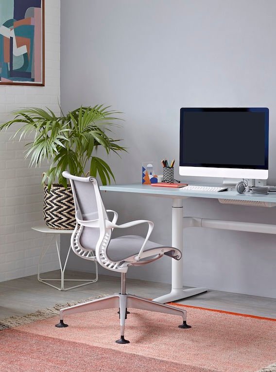 כיסא עבודה מבית Herman Miller, אידיאלי למשרד הביתי. בזכות מושב ומשענת גב גמישים מחומר אלסטי, הכיסא מגיב לתנועות הגוף באופן טבעי ומספק תמיכה דינמית לאורך כל היום – ללא צורך במנגנון הטיה. זמין בגווני גרפיט או אלפיין. מגיע עם אחריות של 12 שנים.
