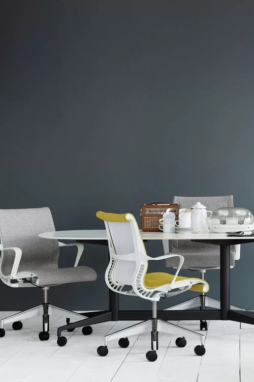 כסא Aeron מבית הרמן מילר הוא הכסא המשרדי הארגונומי הנערץ בעולם, עם עיצוב מתקדם התומך בתנוחות ופעילויות משתנות.